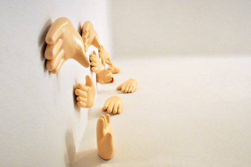 Chiba, Hope is the last to hit, sculpture, each approximately cm 16x16x6, 2010 Galerie Bauchhund Salonlabor, Berlin, Germany